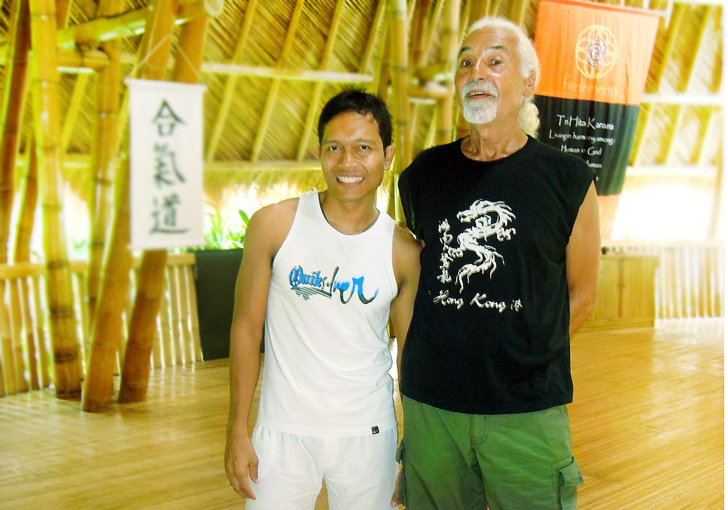 This morning we had a special guest came to Fivelements, Mambal Bali, Mr. G Hoffman Soto, from California. Sacred art Team are given treats exciting martial art using sticks, guns fan and also Soma, which is the soul of body movement. Understanding the body and to understand yourself is the essence of this workshop. I feel honored to be sharing with Mr.Soto, so familiar he was called. and I am also very impressed with him, at age 65 years Mr.Soto still look healthy, supple and still moving very swiftly.